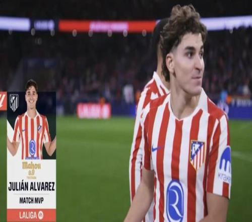 西甲第12轮,马德里竞技主场3-1击败莱万特,马竞前锋阿尔瓦雷斯当选西甲官方全场最佳球员。