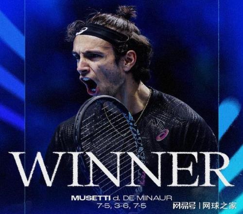 在第二场对决中,9号种子穆塞蒂在决胜盘3-5落后时化解了对手的发球胜赛局,连下四局,以7-5 3-6 7-5艰难战胜7号种子德米纳尔,取得了对后者的四连胜,职业生涯首次拿到年终总决赛的胜利。