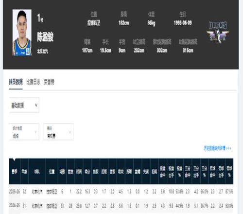 赵睿加盟北京男篮后,受战术影响,陈盈骏的出场顺序由首发变成了替补,也就是成为了球队替补阵容的核心领袖。24-25赛季常规赛,陈盈骏出场33次,仅5次替补身份。本赛季6场过后,他就已替补出场5次。