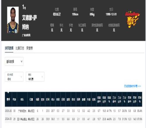 广东男篮第六人:萨姆纳