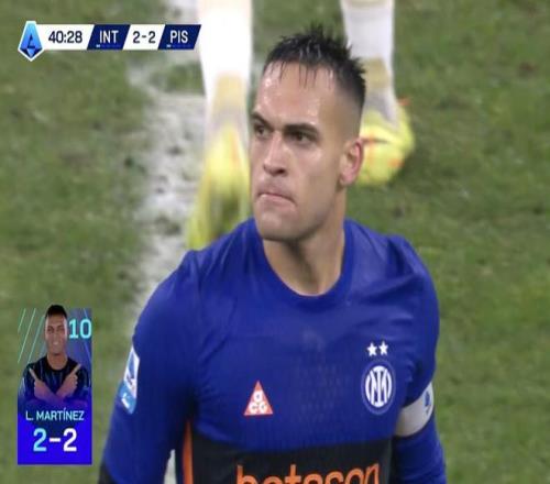 此役主场对阵比萨,劳塔罗-马丁内斯在比赛第41分钟破门,帮助国米将比分扳为2-2。