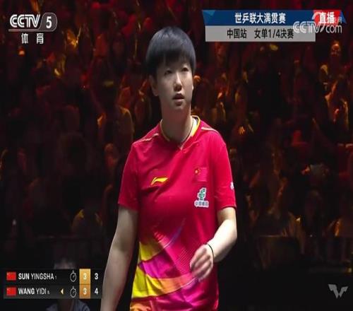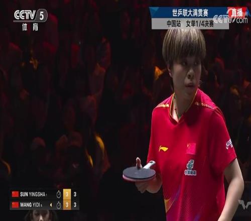 10月3日,WTT中国大满贯女单1/4决赛,孙颖莎4-3(14-12、4-11、11-6、7-11、12-14、11-3、11-8)战胜队友王艺迪,晋级四强。孙颖莎半决赛的对手是陈幸同和朱雨玲之间的胜者。