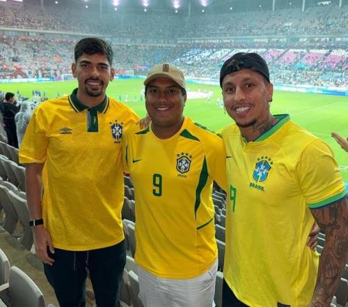 雷速体育10月11日宣 昨晚,巴西队在韩国首尔进行的友谊赛中以5-0大胜韩国队。而效力于山东泰山的巴西籍外援克雷桑、马德鲁加均来到现场观看了这场比赛。