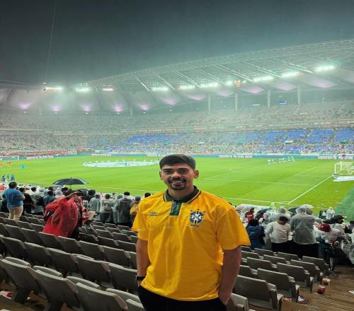 由于中超下一轮比赛在下周五和周六才会进行,因此山东泰山队员目前还处于休假状态。而克雷桑和马德鲁加就结伴来到韩国,现场观看巴西国家队的比赛。